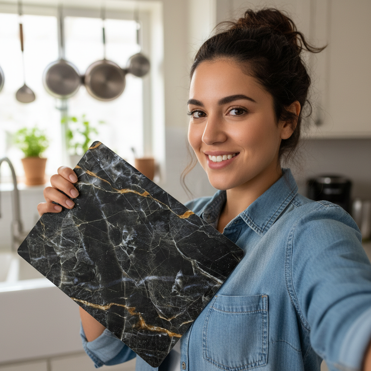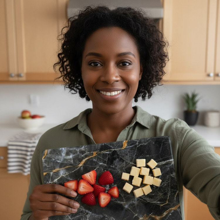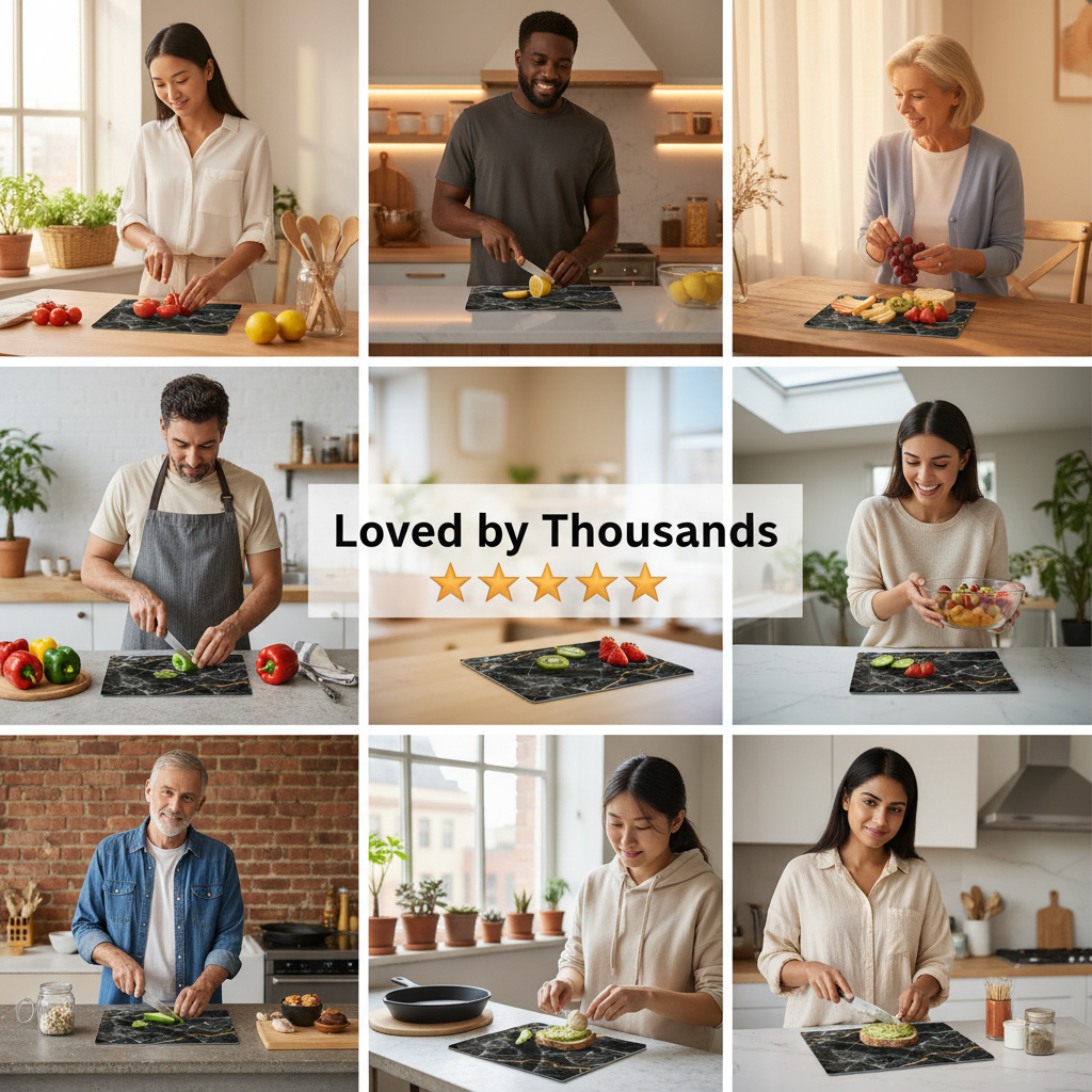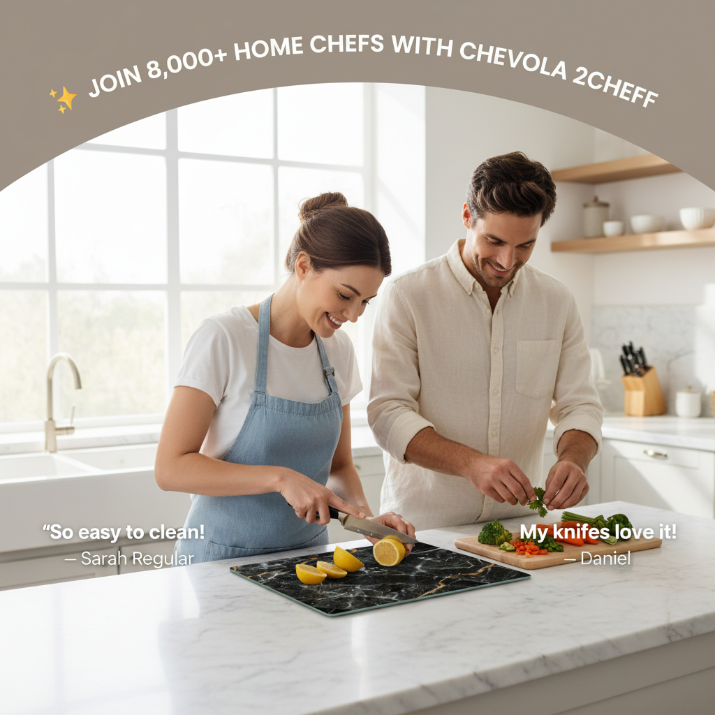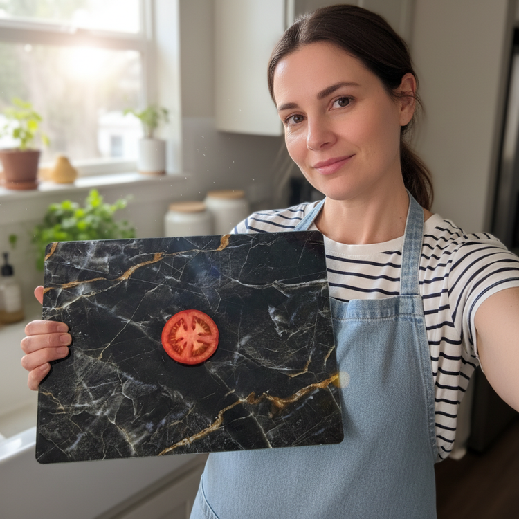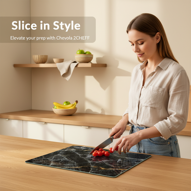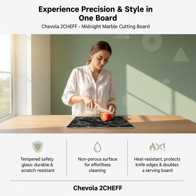 - Tempered glass: durable and scratch-resistant - Non-porous surface for easy cleaning - Heat-resistant up to cooking temperatures - Smooth finish protects knife edges - Doubles as a stylish serving board
