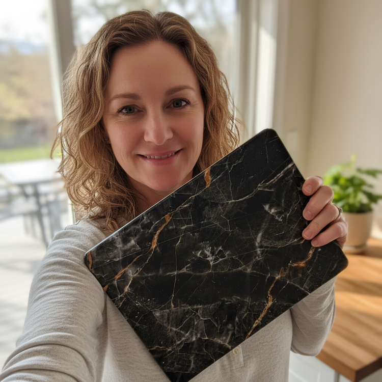 Showcasing the sleek Midnight Marble pattern, this board enhances any kitchen aesthetic. Use it for prep or as a chic serving platter at your next gathering.